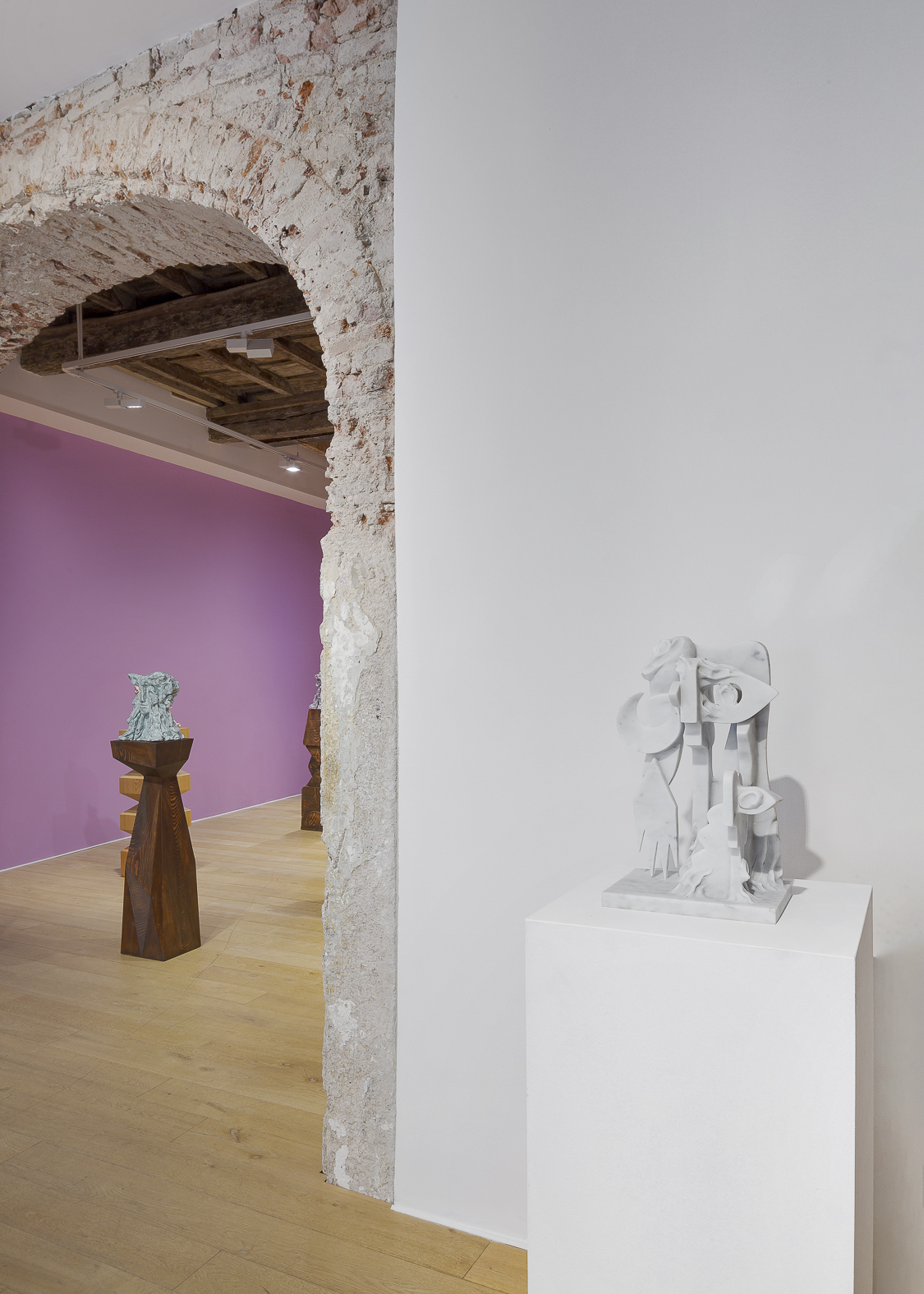Unlike marble, which retains firmness and sturdiness, porcelain is unpredictable – it reacts to heat, pressure, and moisture, often yielding unexpected results. Gray intentionally retains a degree of moisture in the clay before firing, fostering internal stresses that may result in fissures during the kiln process. Rather than perceiving these cracks as flaws, the artist considers them integral to the sculptures’ visual language – a manifestation of tension, movement, and inevitable evolution.