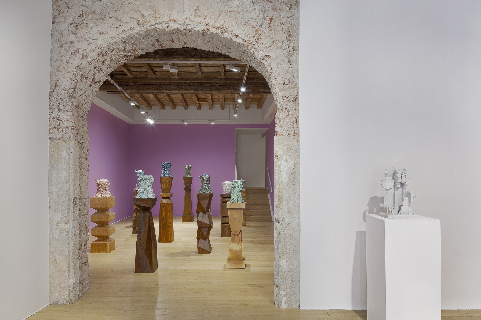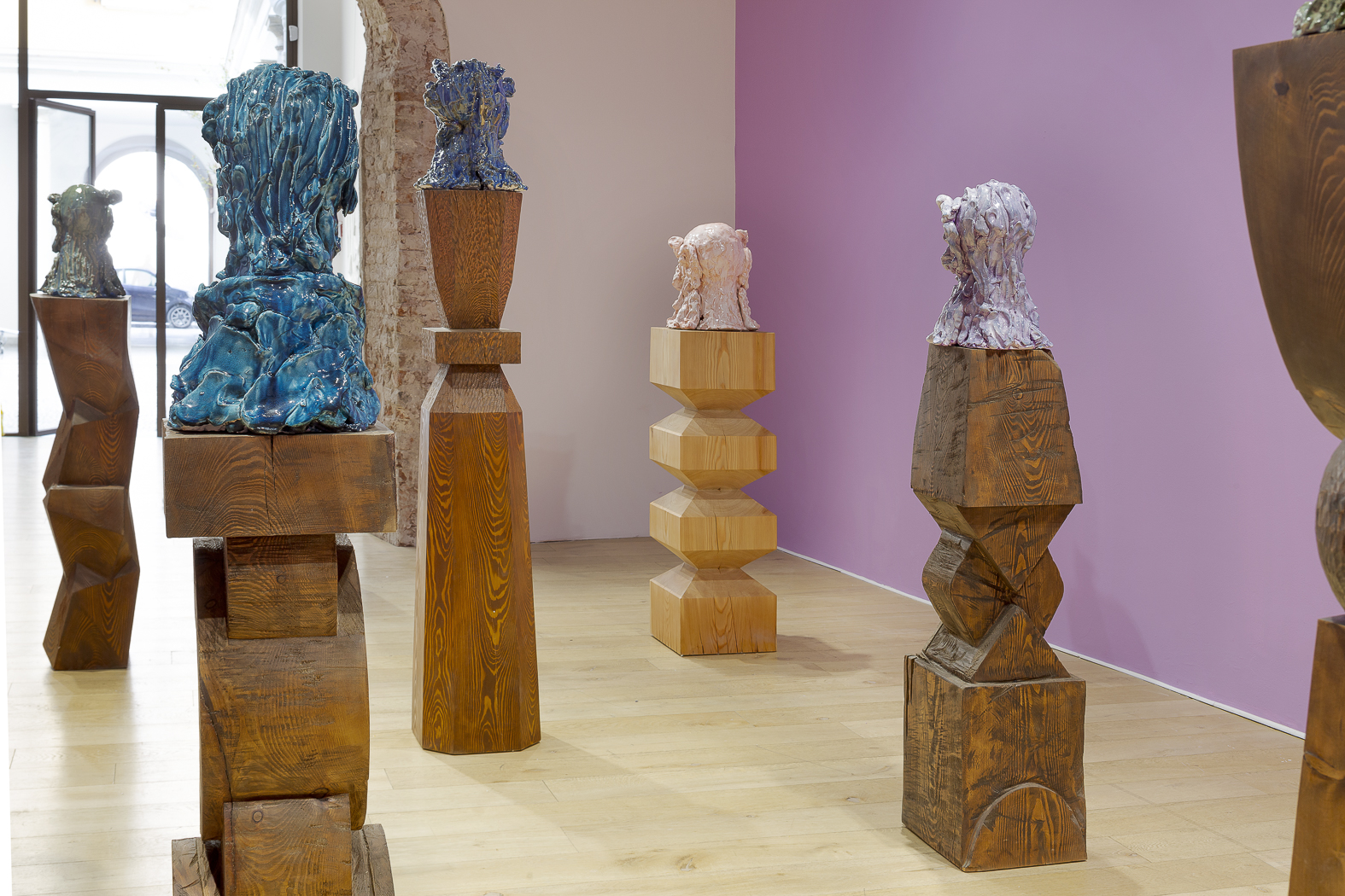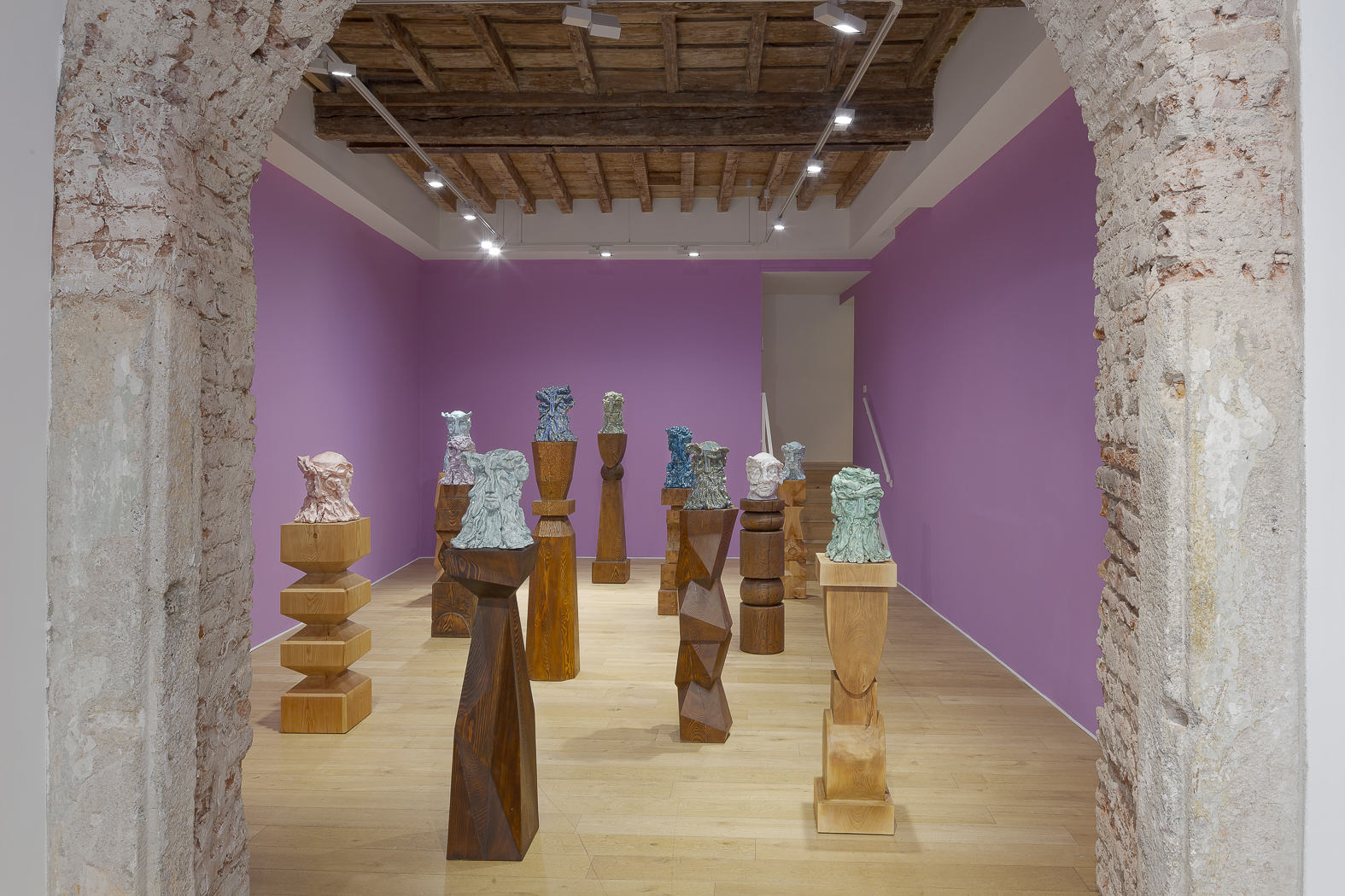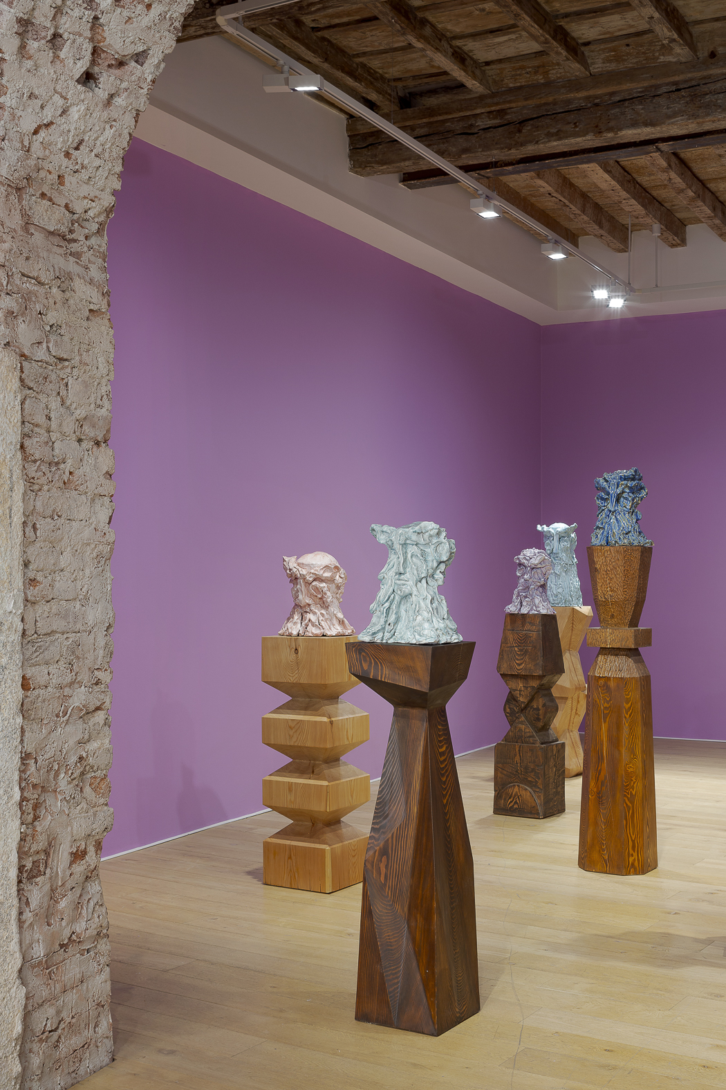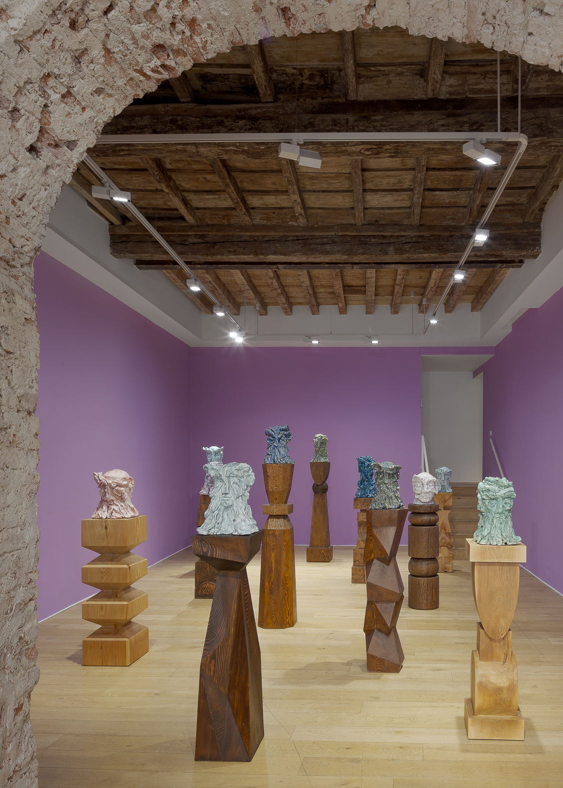 Each sculpture in the Fragile Heads Series features a colour-glazed porcelain bust, poised on a custom- carved wooden base. While Gray has long been celebrated for his mastery of marble, this new series welcomes the unpredictability of porcelain. By working with a medium that through its creation is prone to cracking and warping, Gray challenges traditional sculptural conventions, using its rawness, imperfections, and inherent fragility as expressive tools to resonate upon how tensions between resilience and vulnerability are intrinsic to the shaping of one’s identity.