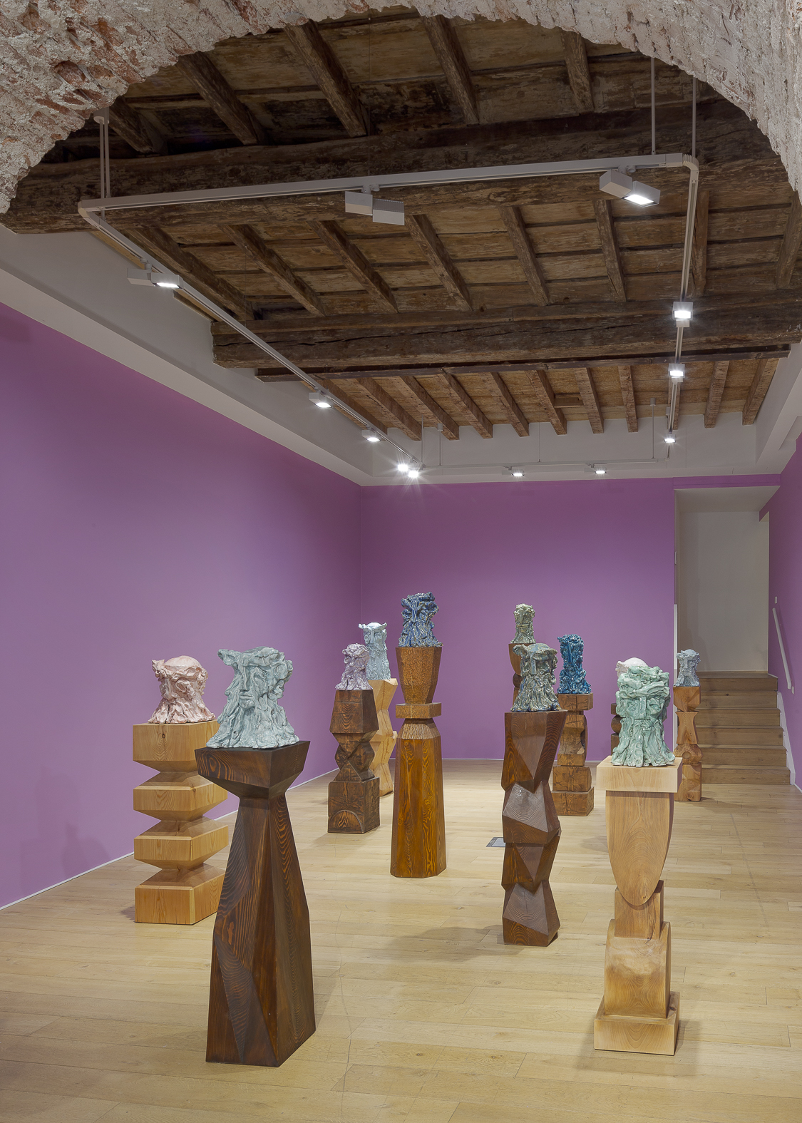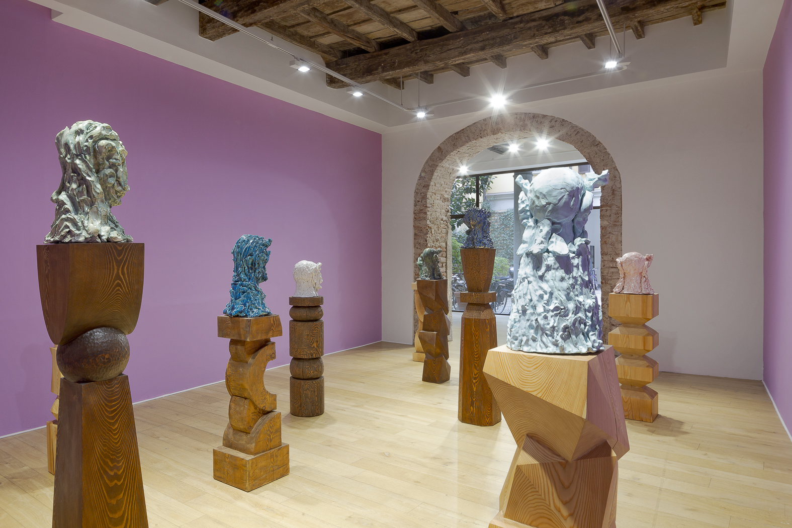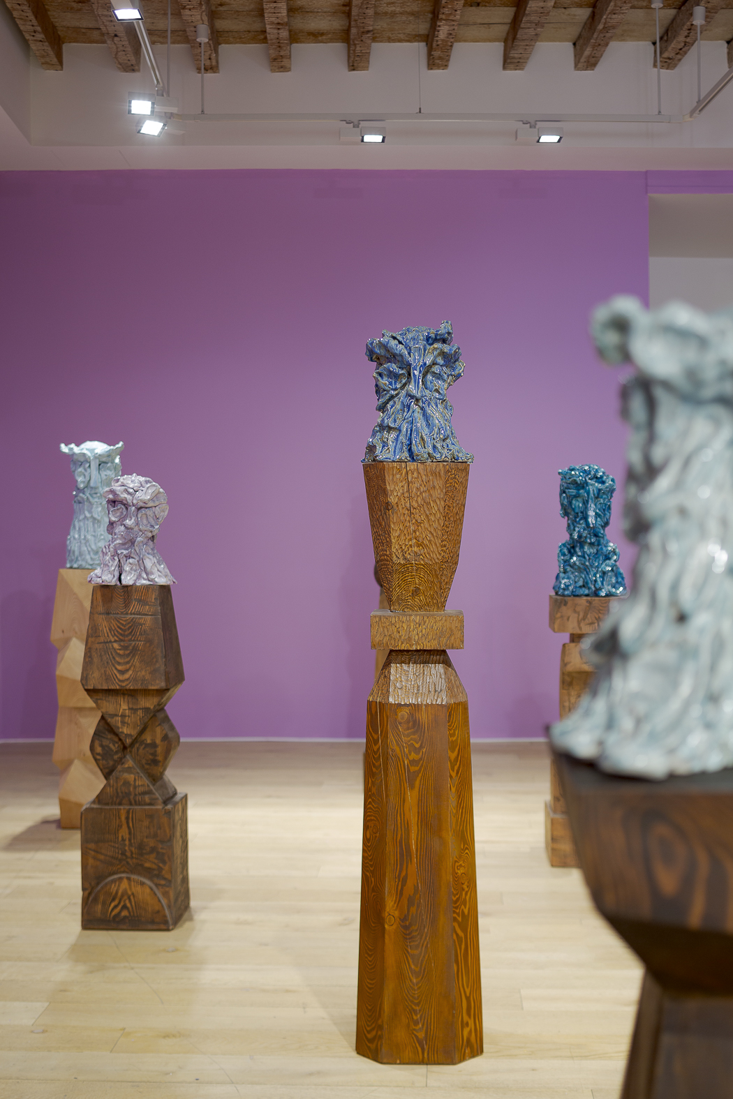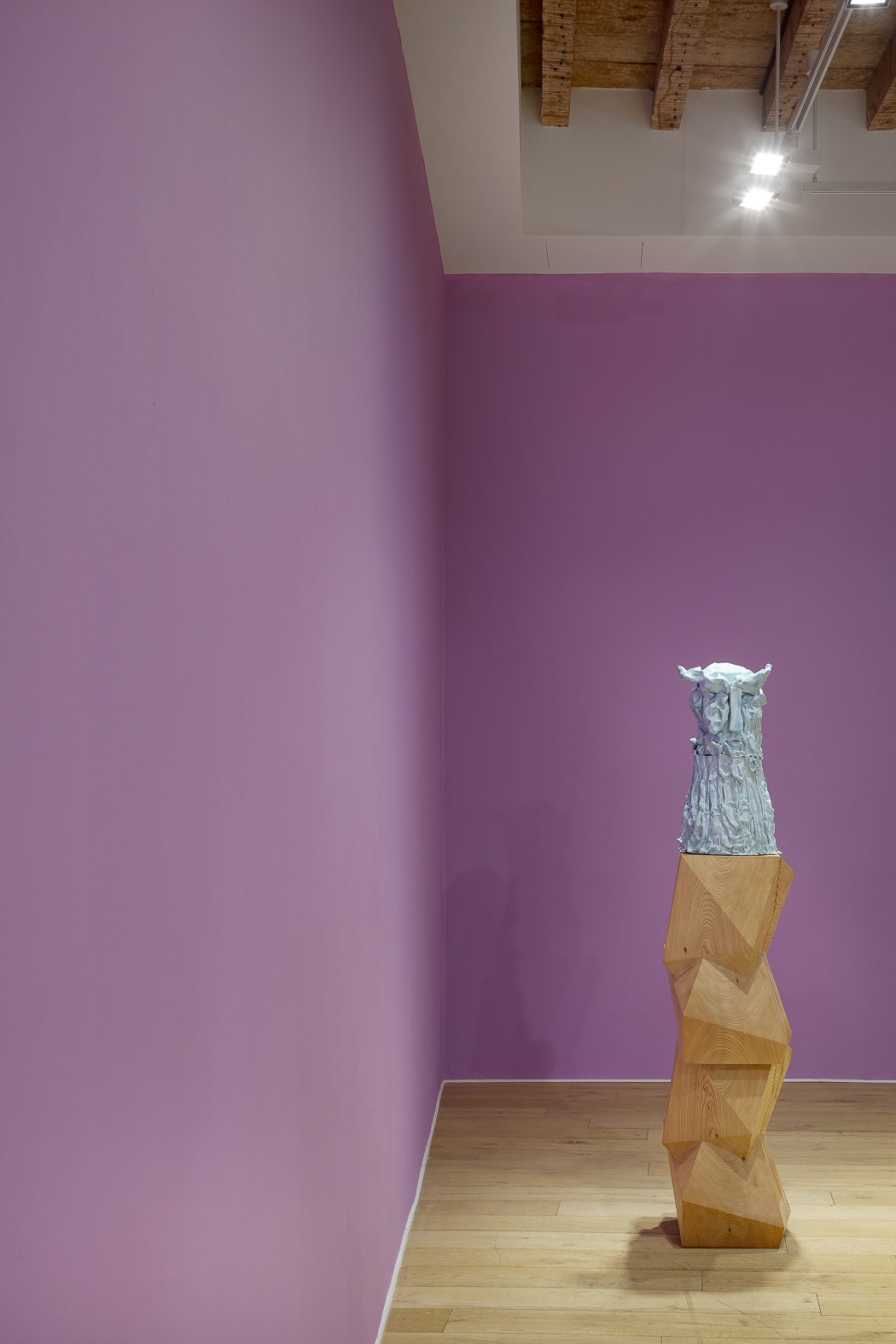 Each sculpture in the Fragile Heads Series features a colour-glazed porcelain bust, poised on a custom- carved wooden base. While Gray has long been celebrated for his mastery of marble, this new series welcomes the unpredictability of porcelain. By working with a medium that through its creation is prone to cracking and warping, Gray challenges traditional sculptural conventions, using its rawness, imperfections, and inherent fragility as expressive tools to resonate upon how tensions between resilience and vulnerability are intrinsic to the shaping of one’s identity.